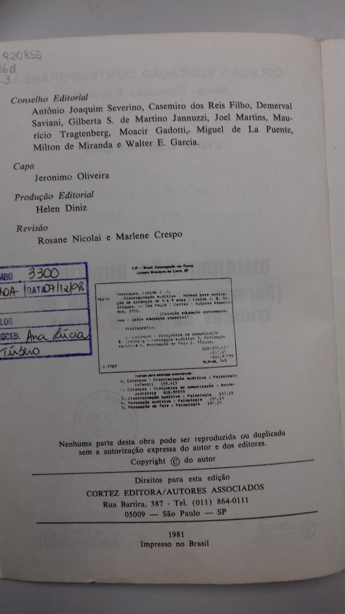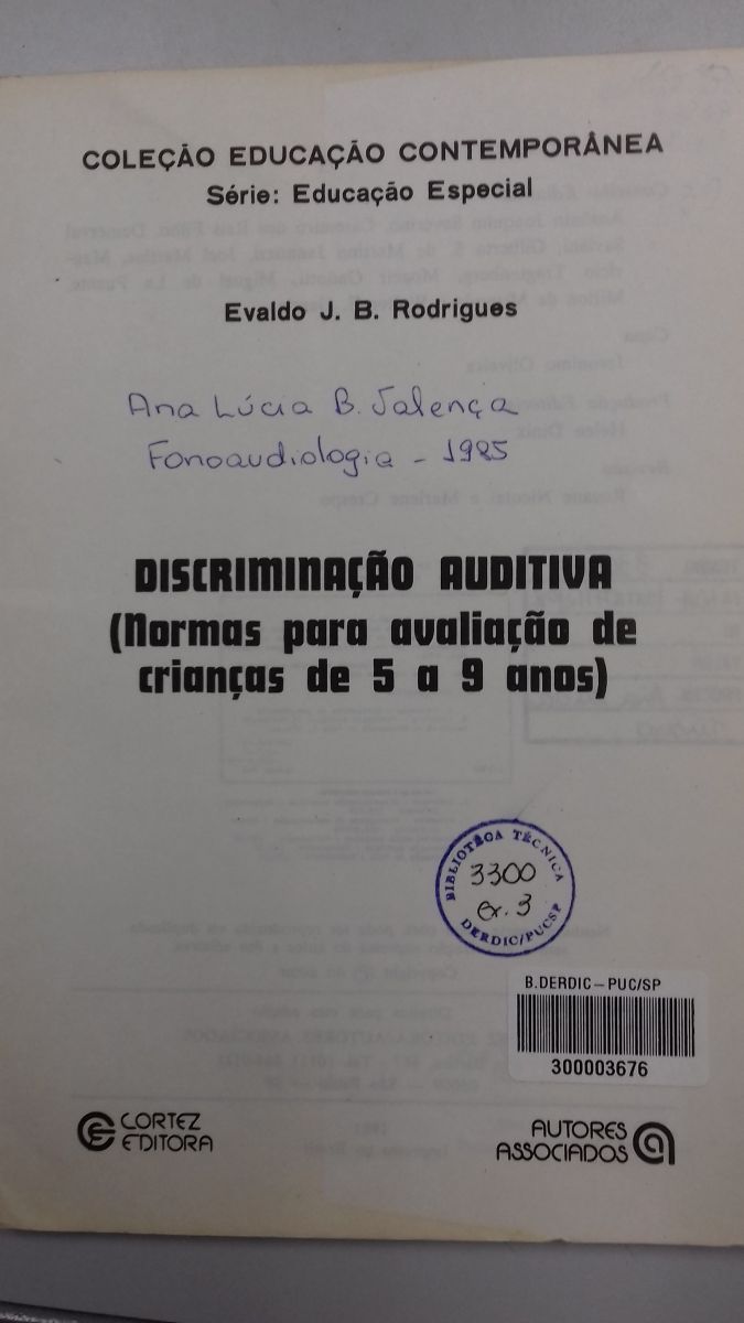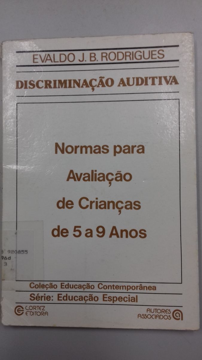 Discriminação auditiva: normas para avaliação de crianças de 5 a 9 anos por Evaldo J. B. Rodrigues