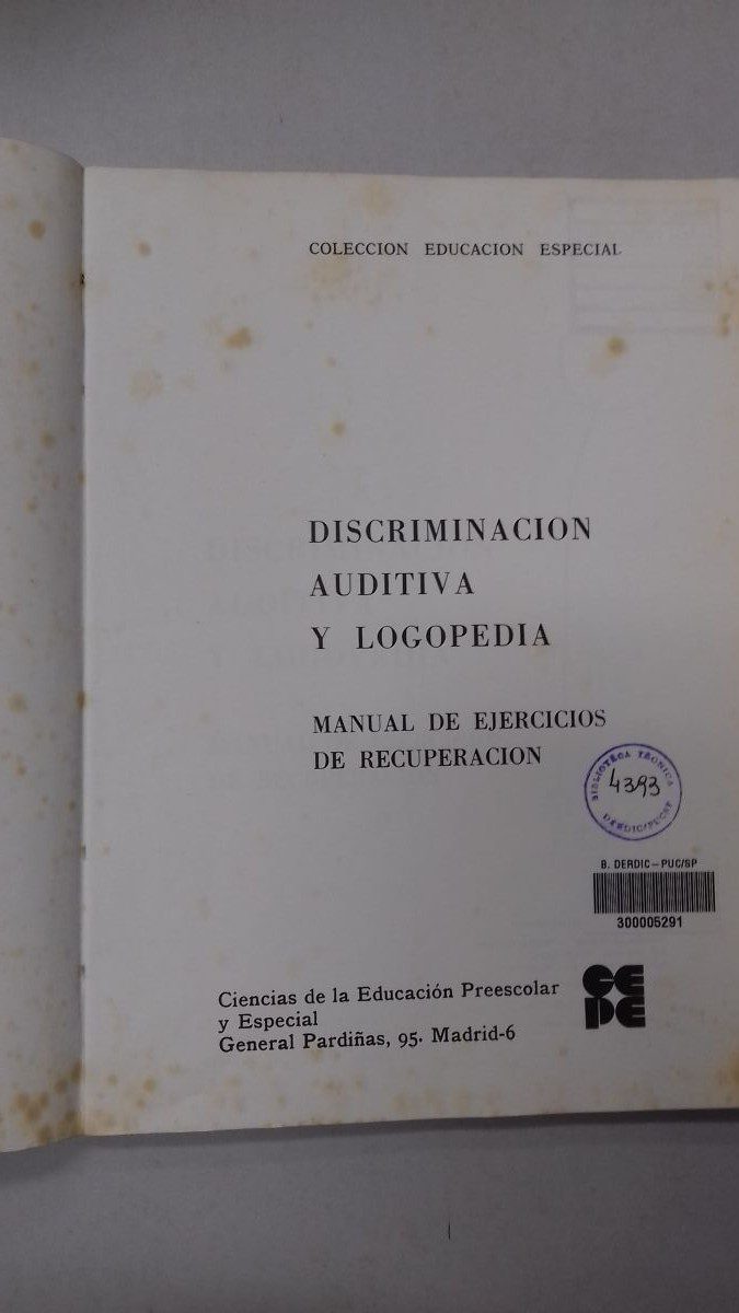 Título: Discriminacion auditiva y logopedia: manual de ejercicios de recuperacion
