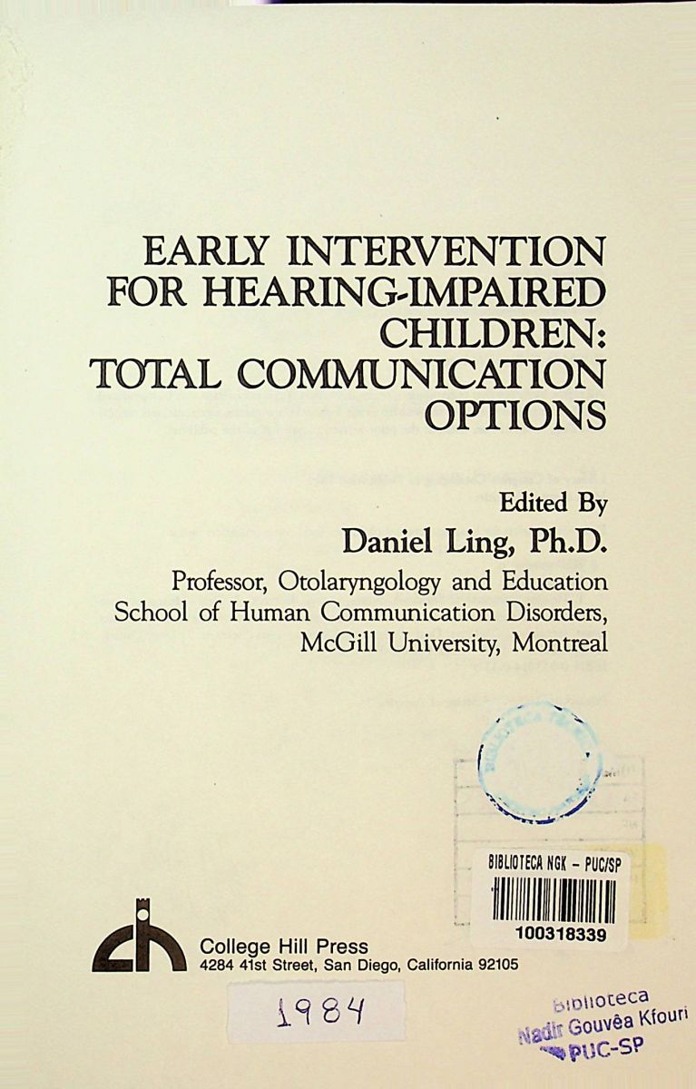 | Título | Early intervention for hearing-impaired children: total communication options |
