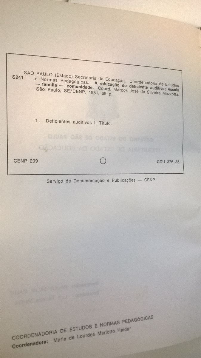 Título: Educação do deficiente auditivo: escola, familia, comunidade