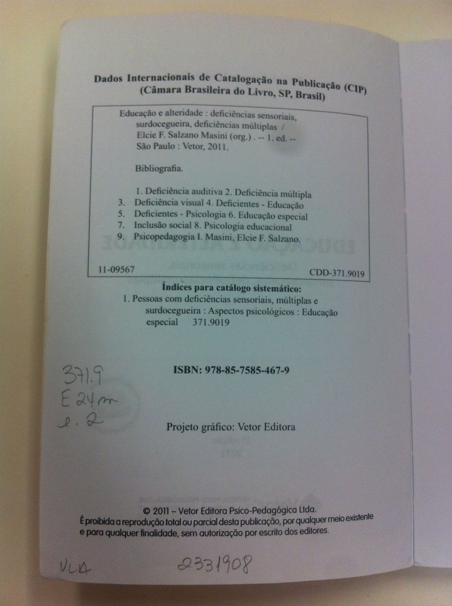 Título: Educação e alteridade: deficiências sensoriais, surdocegueira, deficiências múltiplas