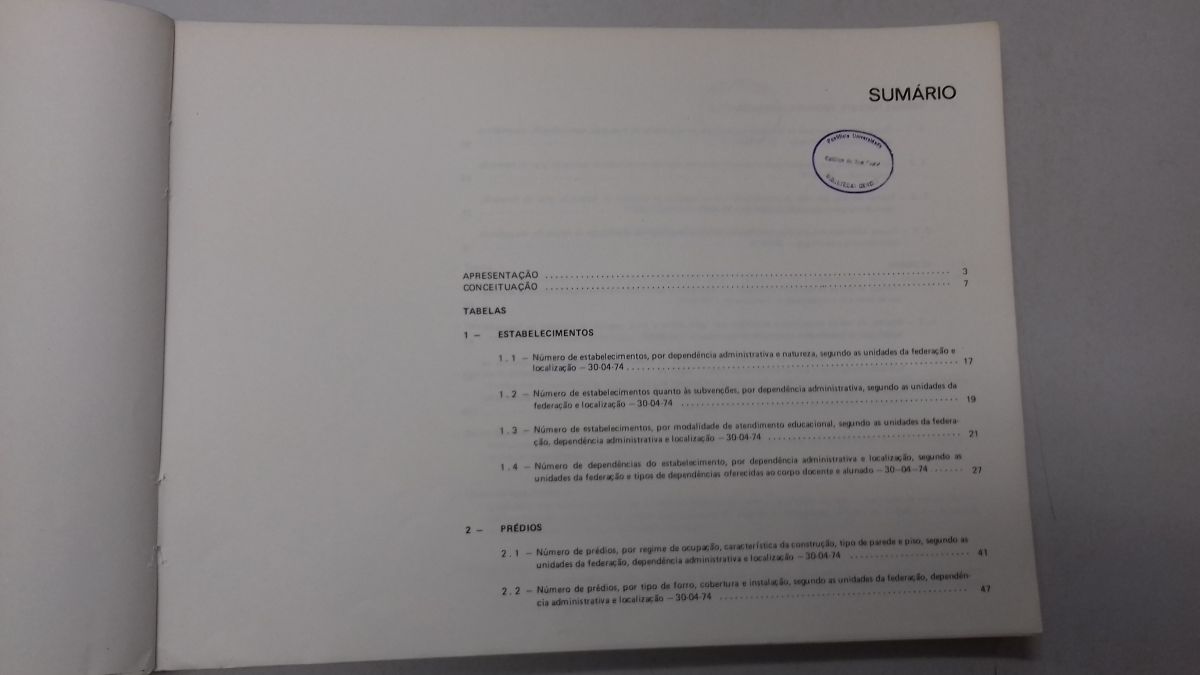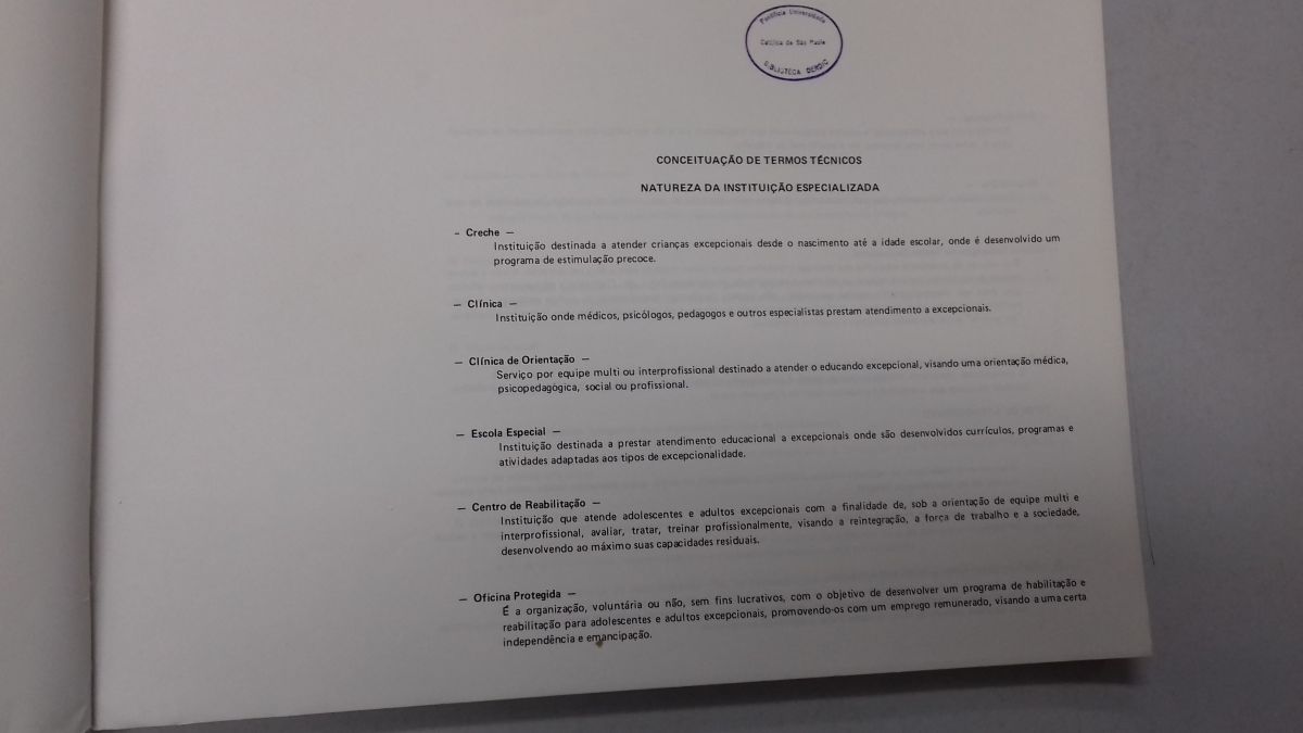 Título: Educação especial. Dados estatísticos 1974