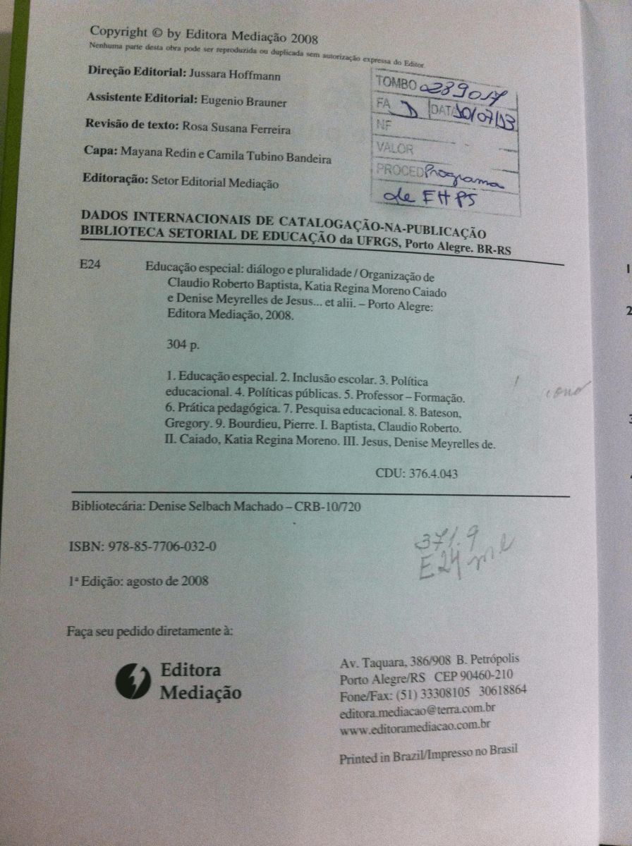 Título: Educação especial: diálogo e pluralidade