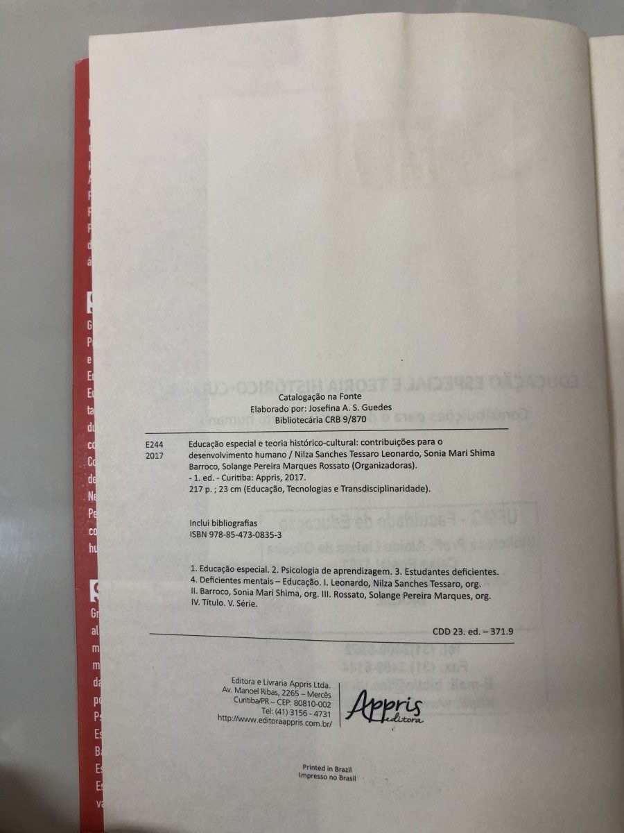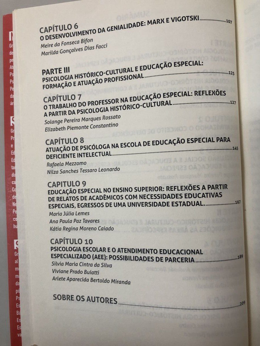 Título: Educação especial e teoria histórico-cultural: contribuições para o desenvolvimento humano