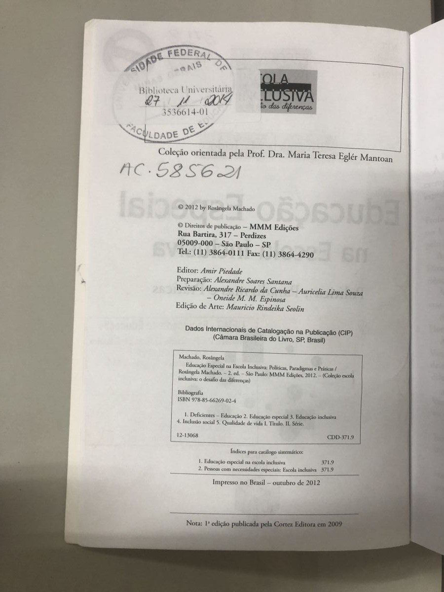 Título: Educação especial na escola inclusiva: políticas, paradigmas e práticas