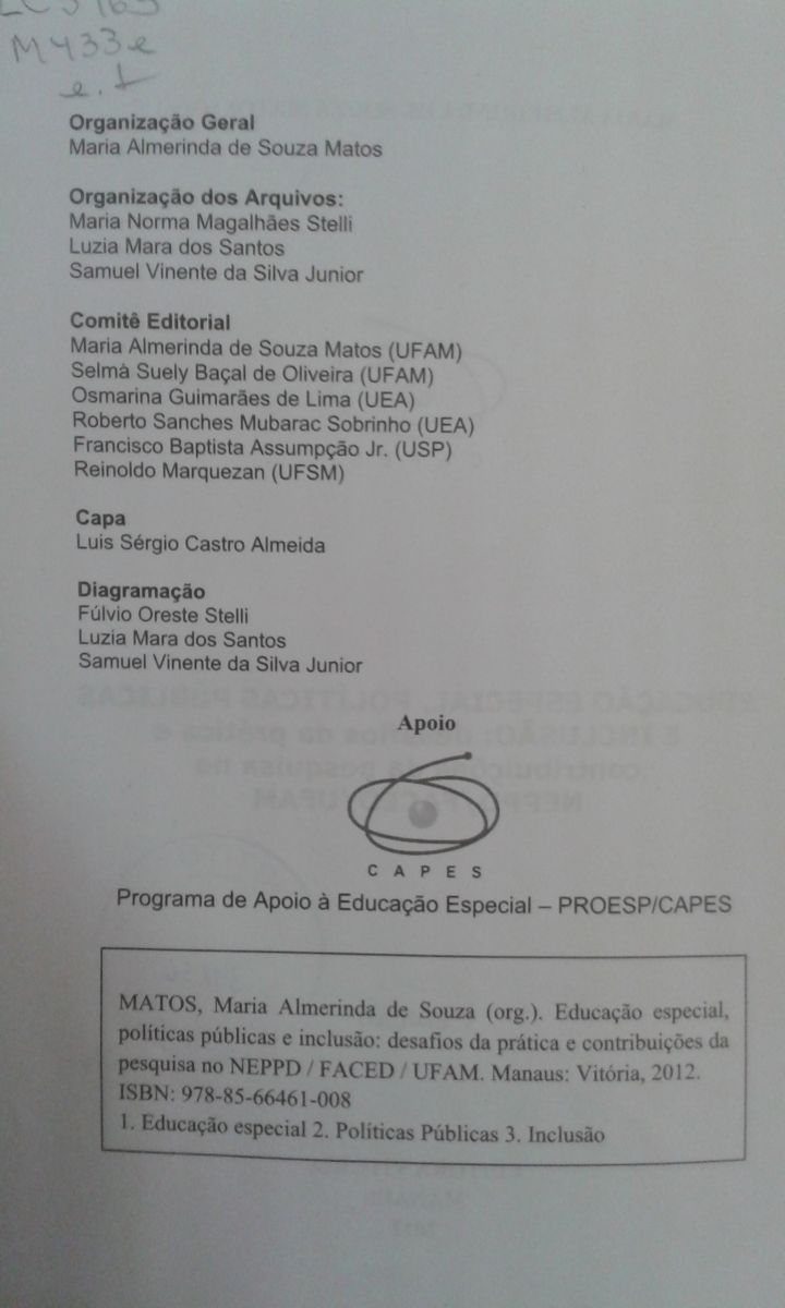 Título: Educação especial, políticas públicas e inclusão