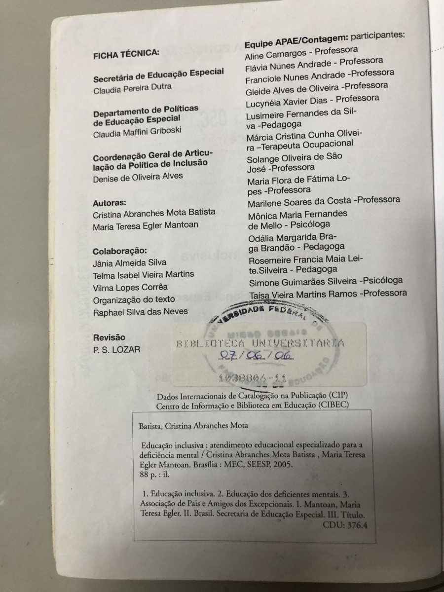 Título: Educação inclusiva: atendimento educacional especializado para a deficiência mental