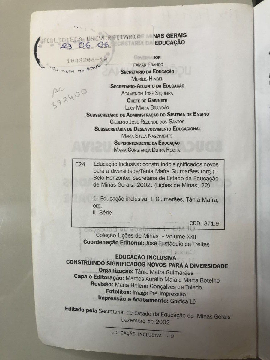 Título: Educação inclusiva: construindo significados novos para a diversidade