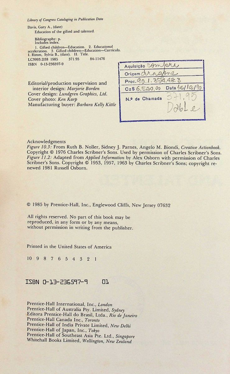 Autor/Organizador: Gary A. Davis; Sylvia B. Rimm