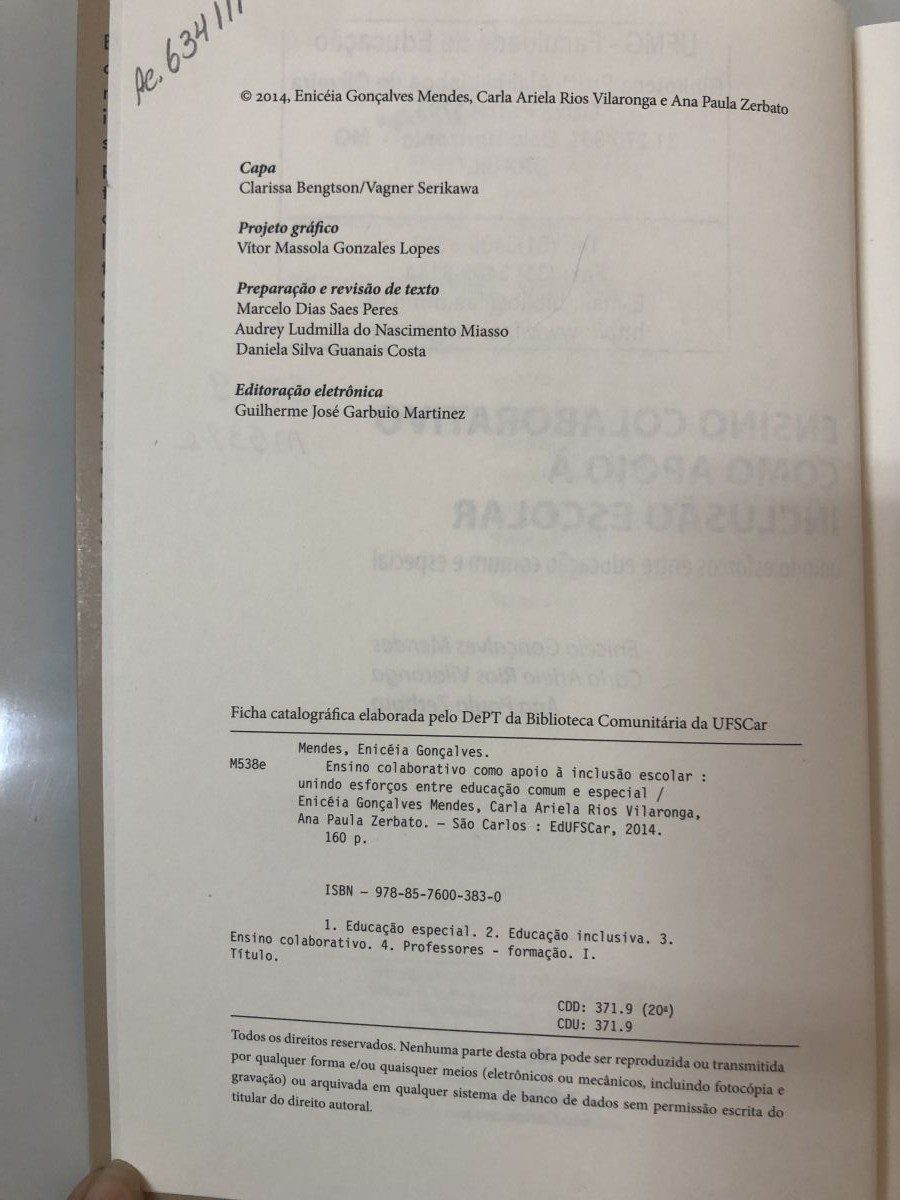 Título: Ensino colaborativo como apoio à inclusão escolar: unindo esforços entre educação comum e especial