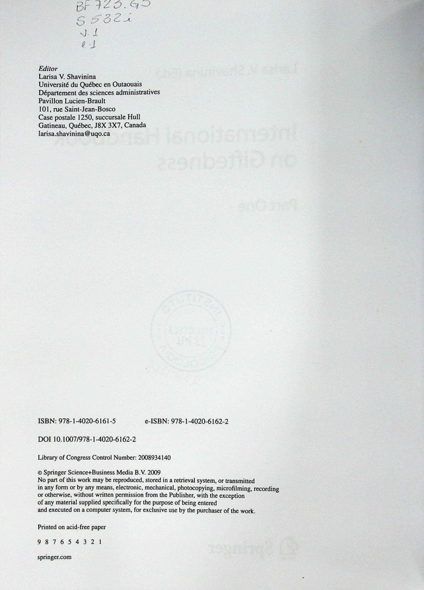 • International handbook on giftedness: vol. 2
