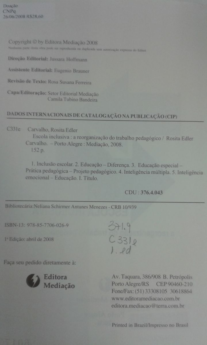Título: Escola inclusiva: a reorganização do trabalho pedagógico