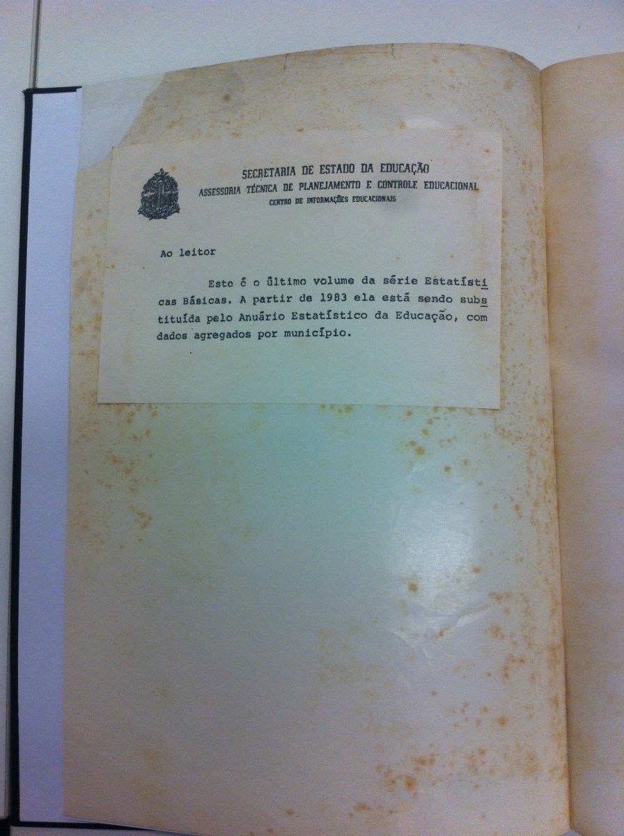 Título: Estatísticas básicas: educação pré-escolar, especial e ensino de 1º e 2º graus