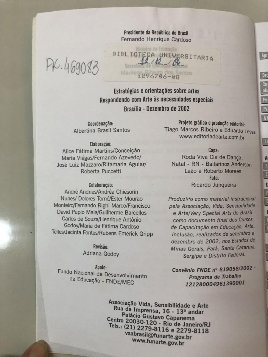 Título: Estratégias e orientações sobre artes: respondendo com arte às necessidades especiais