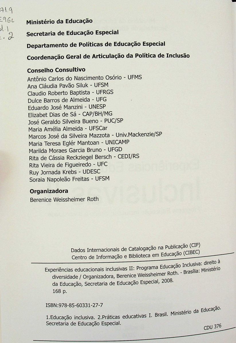 Título: Experiências educacionais inclusivas II: programa educação inclusiva: direito à diversidade