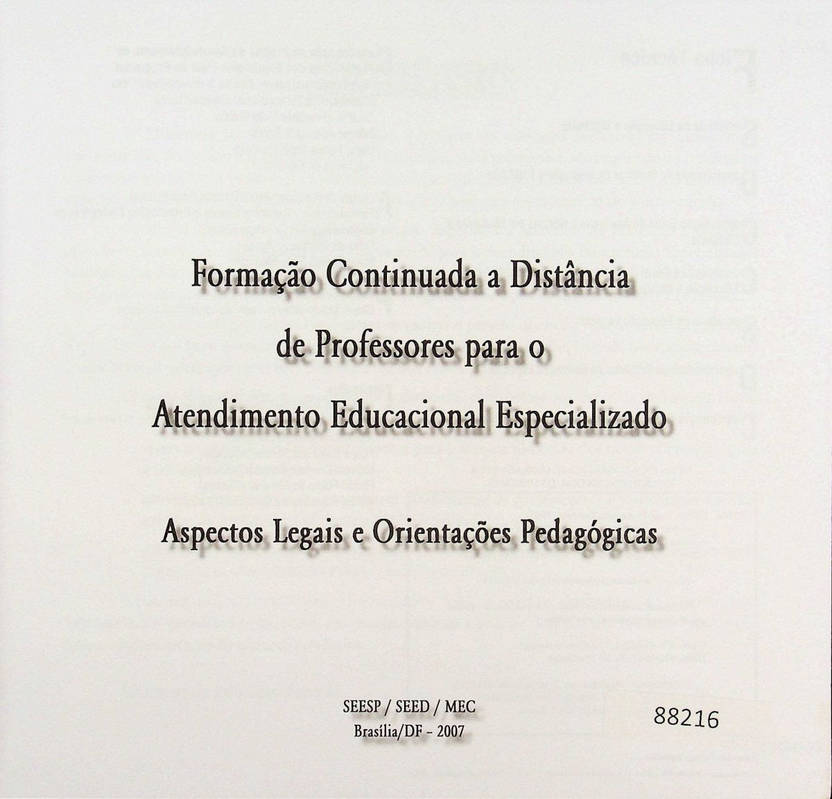 Título: Formação continuada a distância de professores para o atendimento educacional especializado: aspectos legais e orientações pedagógicas