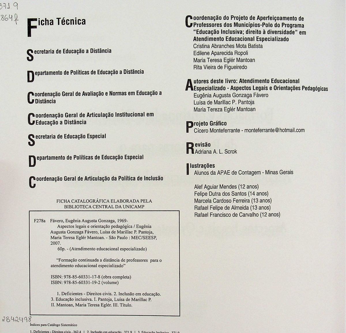 Autor/Organizador: Eugênia Augusta Gonzaga Fávero; Luísa de Marillac P. Pantoja; Maria Teresa Eglér Mantoan