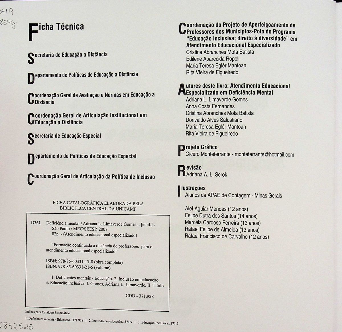Título: Formação continuada a distância de professores para o atendimento educacional especializado: deficiência mental