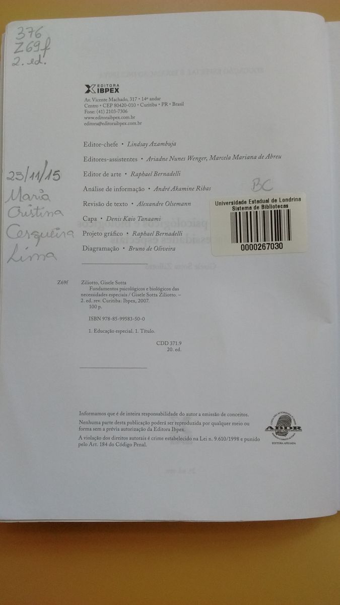 Autor/Organizador: Giselle Sotta Ziliotto