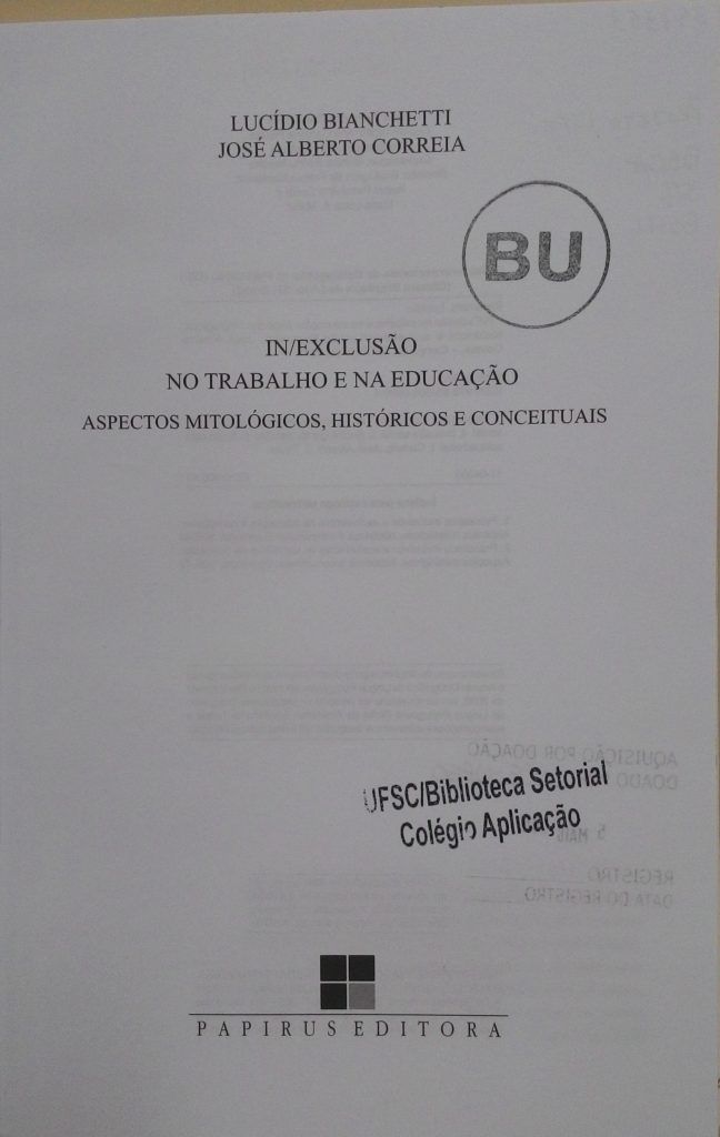 Título: In exclusão no trabalho e na educação: aspectos mitológicos, históricos e conceituais
