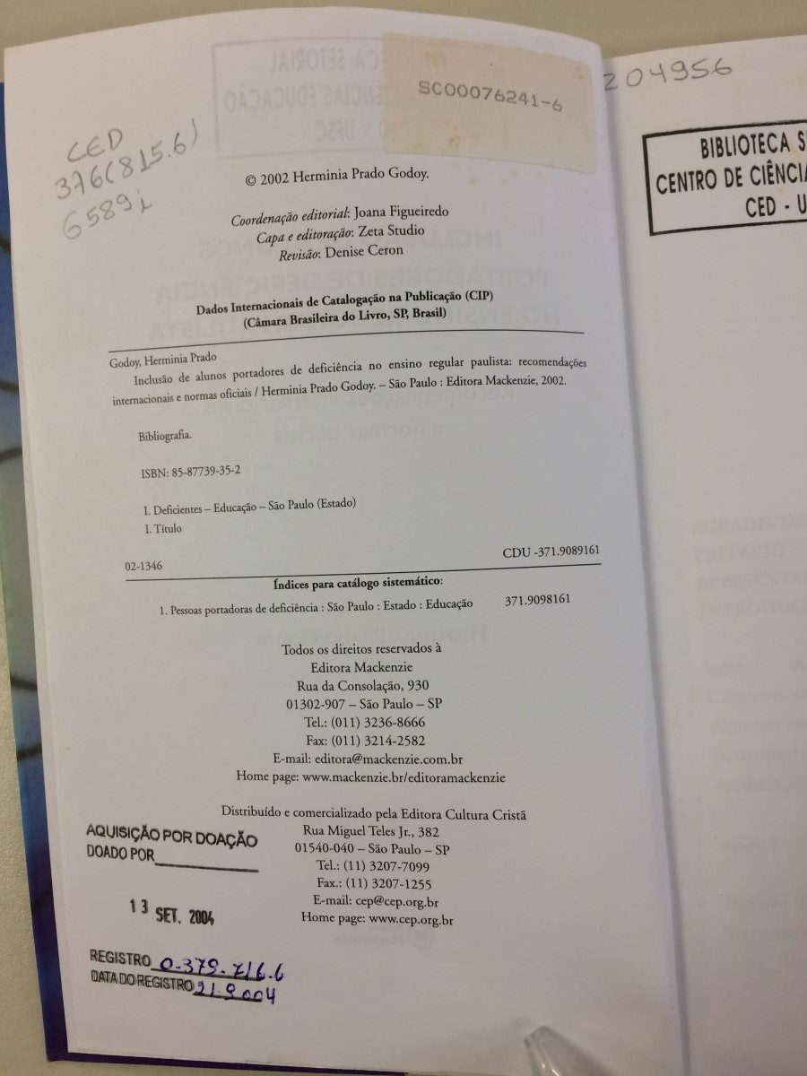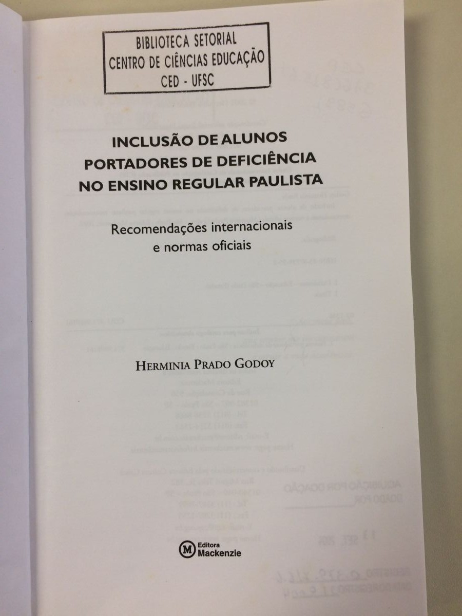 Título: Inclusão de alunos portadores de deficiência no ensino regular paulista: recomendações internacionais e normas oficiais
