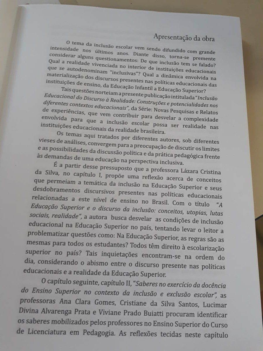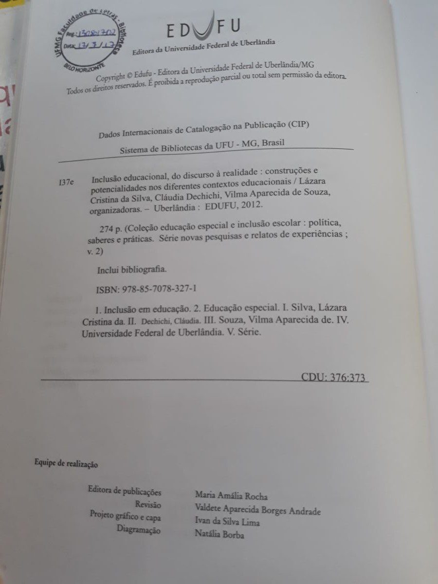 Título: Inclusão educacional, do discurso à realidade:  construções e potencialidades nos diferentes contextos educacionais