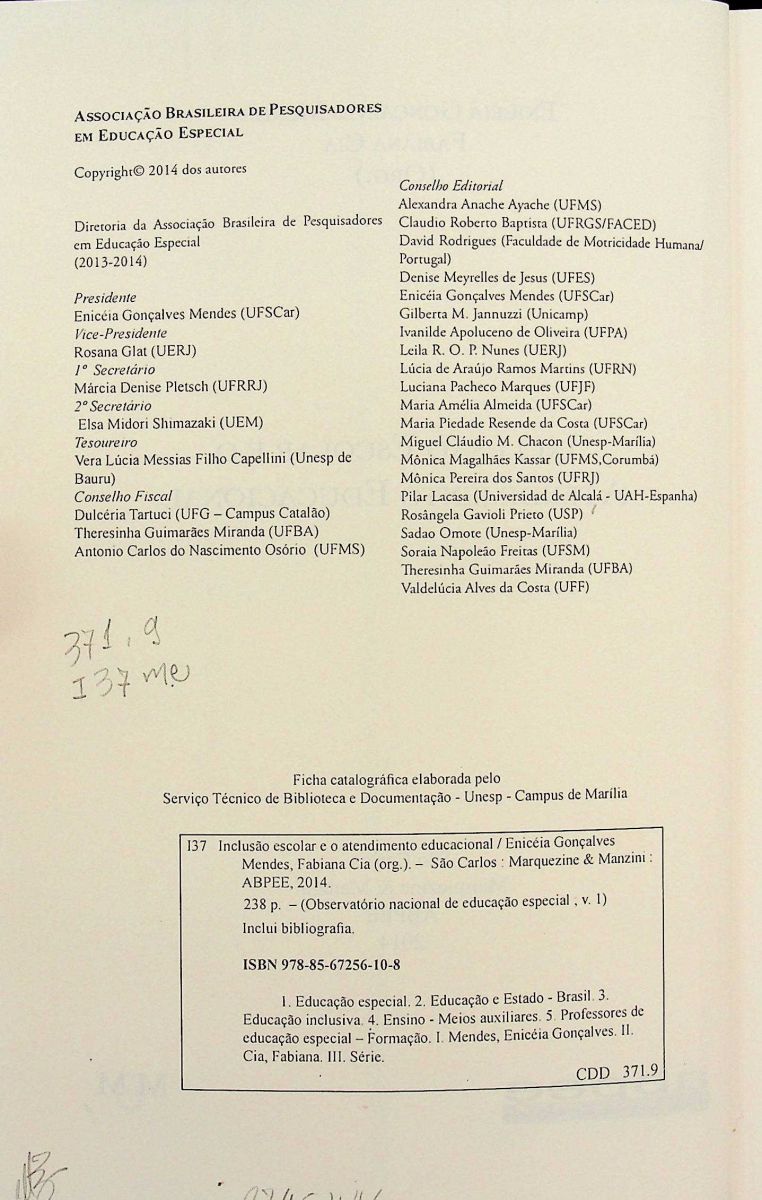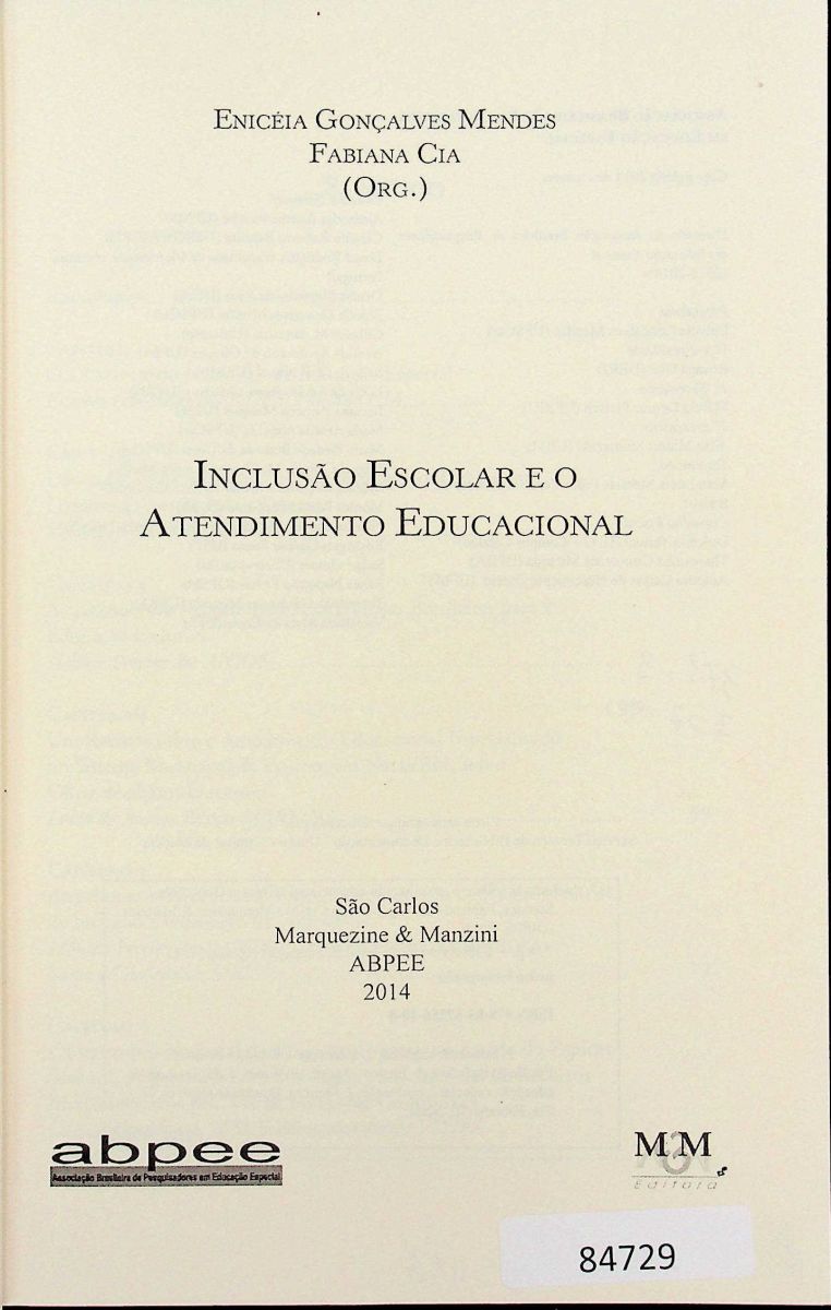 Inclusão escolar e o atendimento educacional por Eniceia Goncalves Mendes; Fabiana Cia
