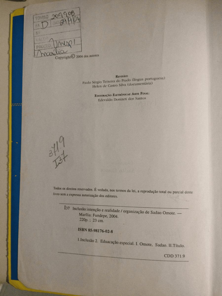 Título: Inclusão: intenção e realidade