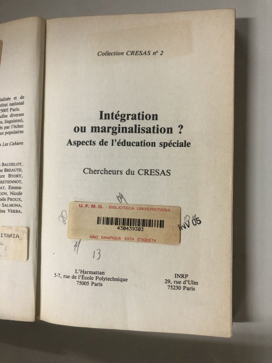 Título: Intégration ou marginalisation:  aspectos de l’éducation spécialisée