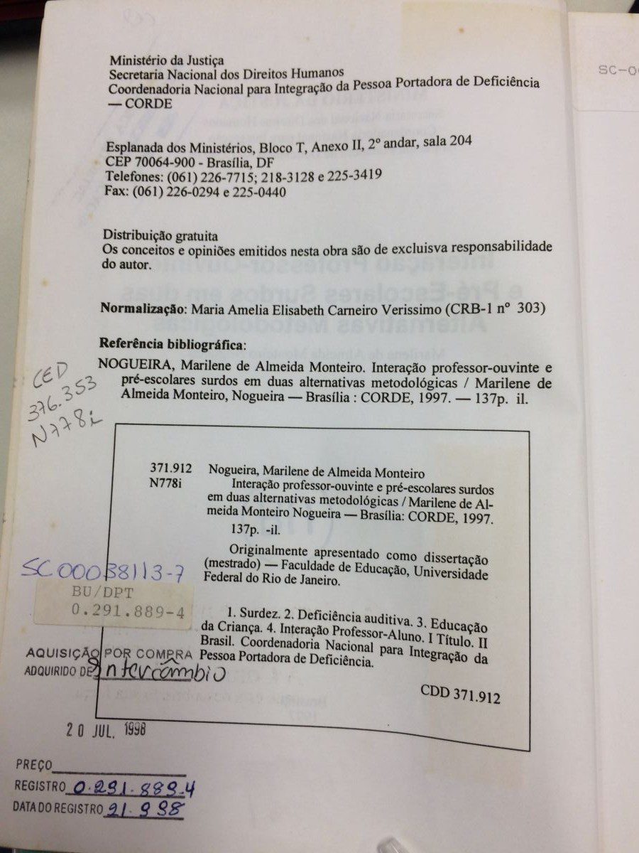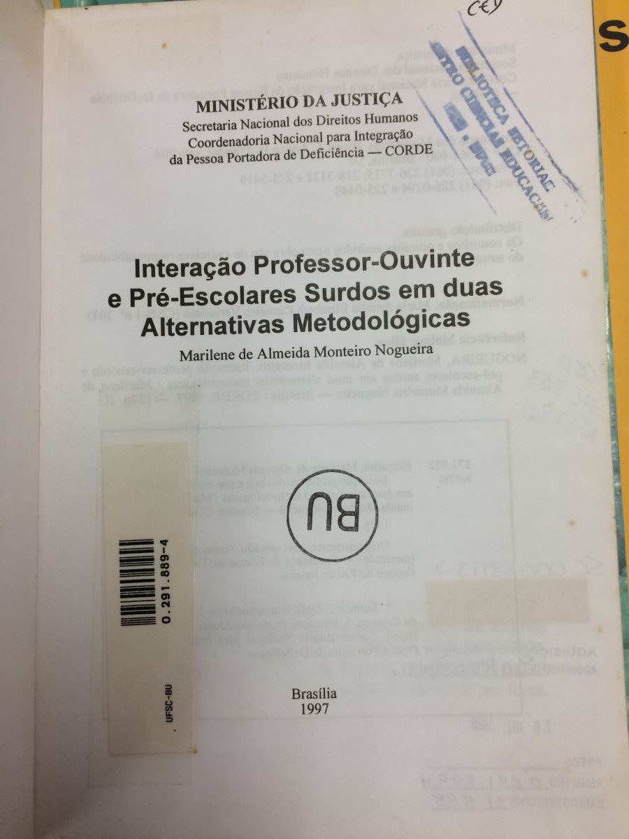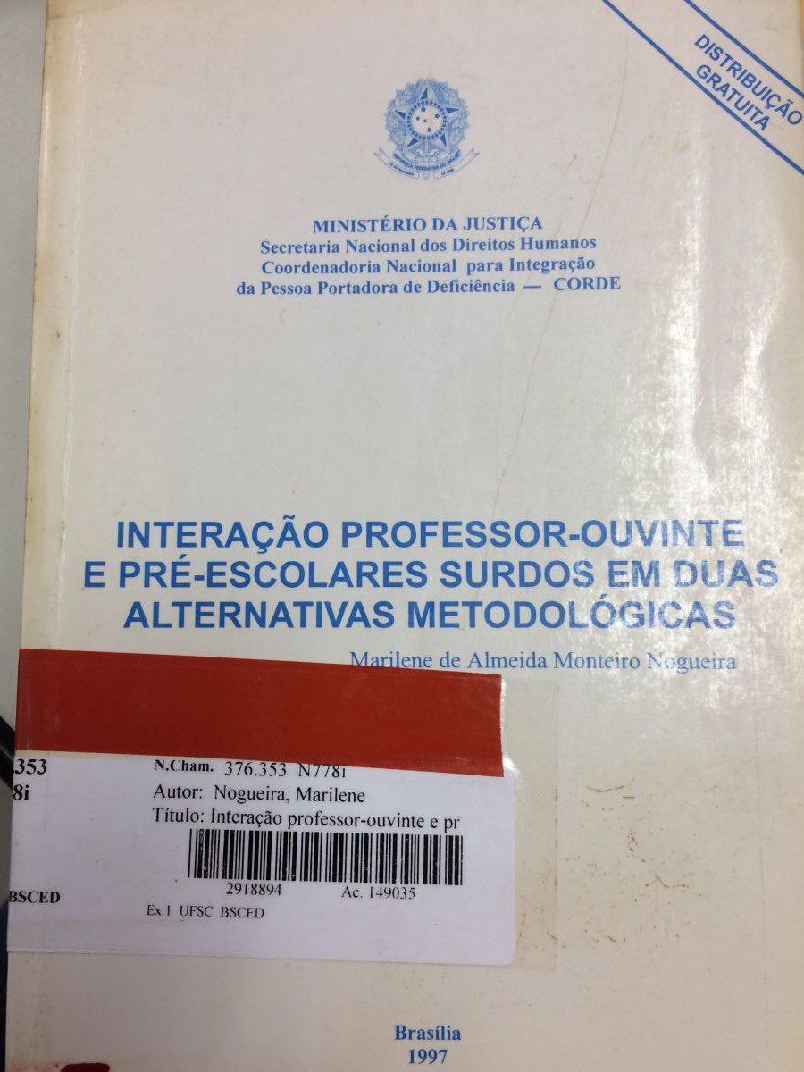 Título: Interação professor-ouvinte e pré escolares surdos em duas alternativas metodológicas