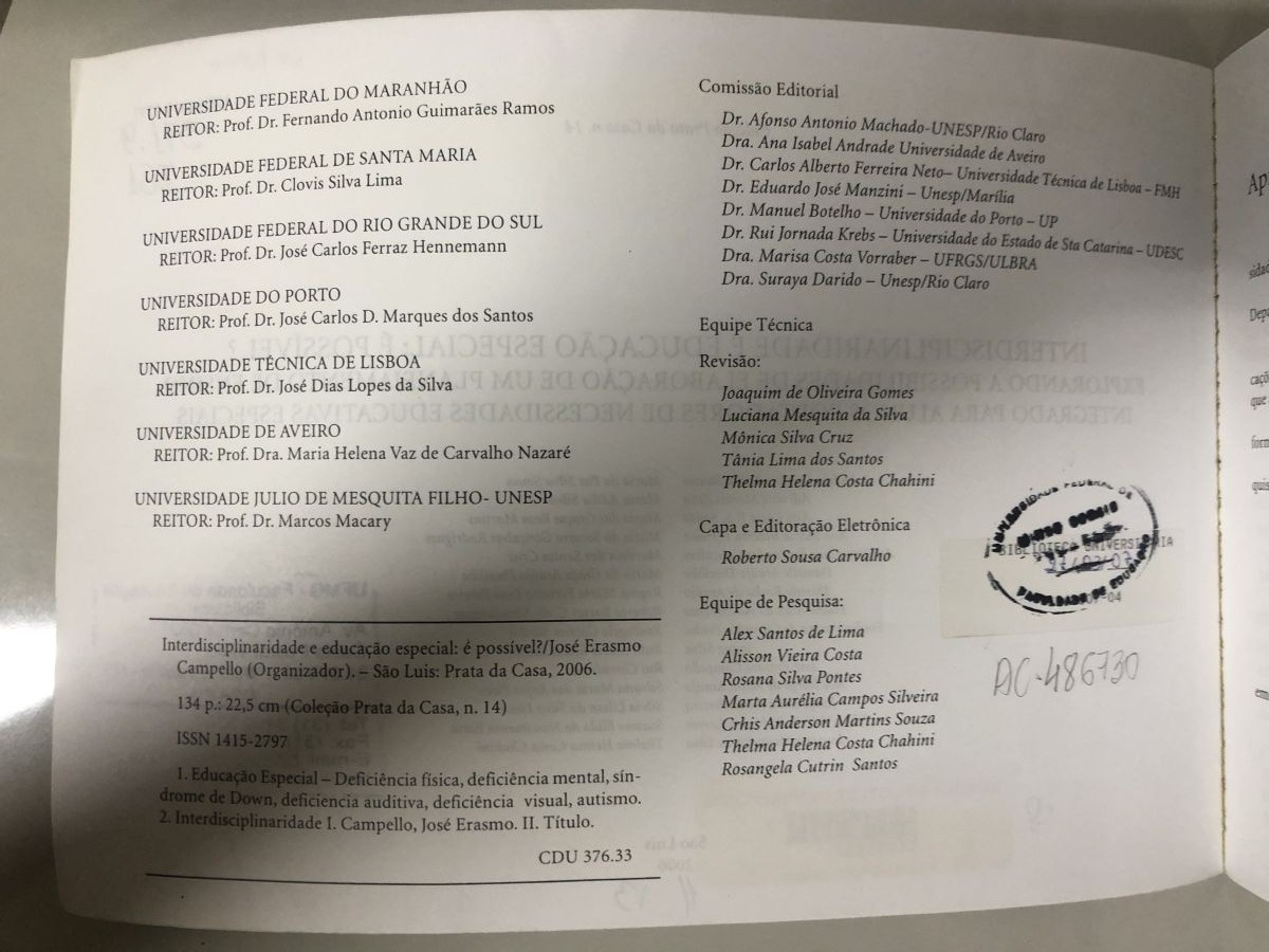 Título: Interdisciplinaridade e educação especial: é possível?: Explorando a possibilidade de elaboração de um planejamento de ensino integrado para alunos portadores de necessidades educativas especiais