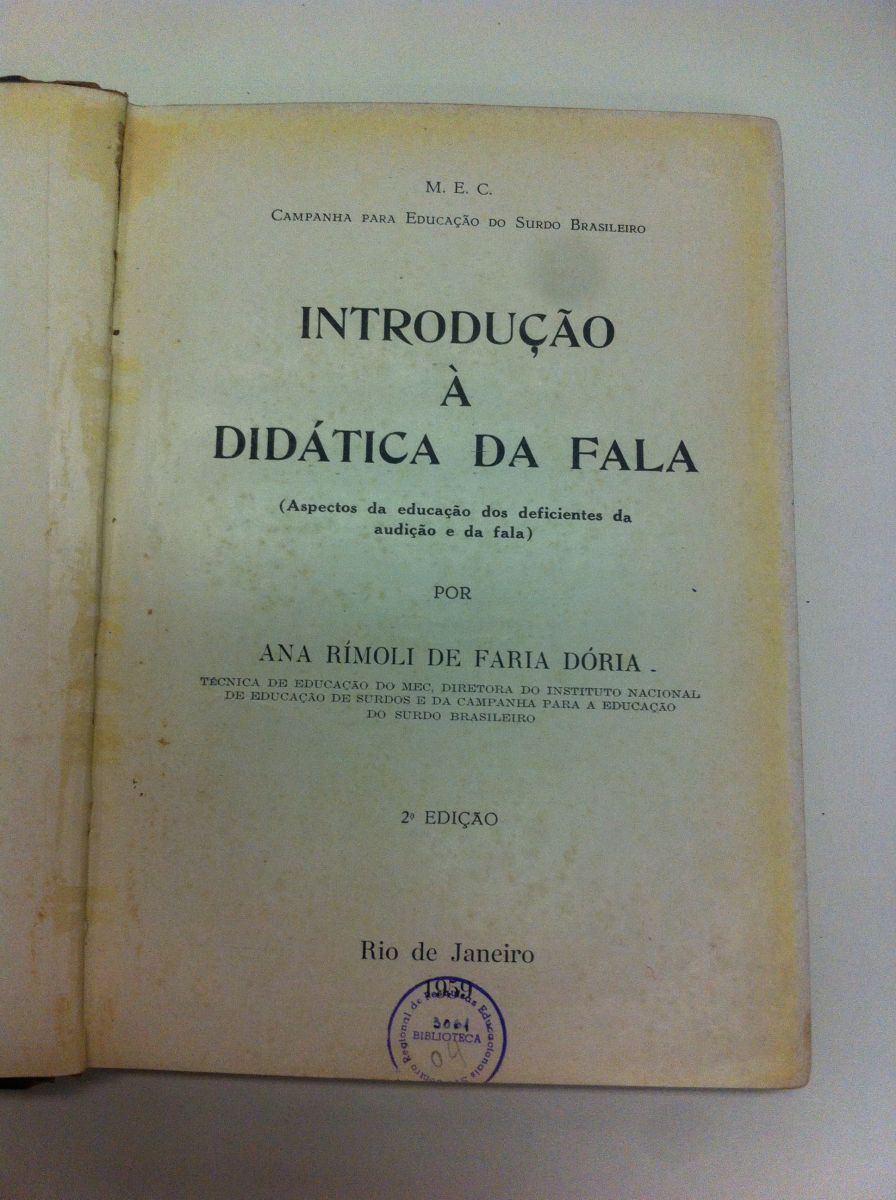 Introdução à didática da fala: aspectos da educação dos deficientes da audição e da fala por Ana Rimoli de Faria Doria