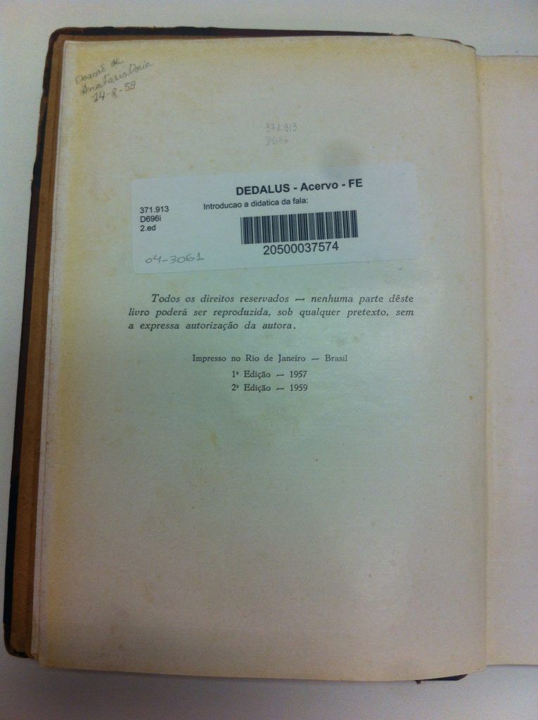 Título: Introdução à didática da fala: aspectos da educação dos deficientes da audição e da fala