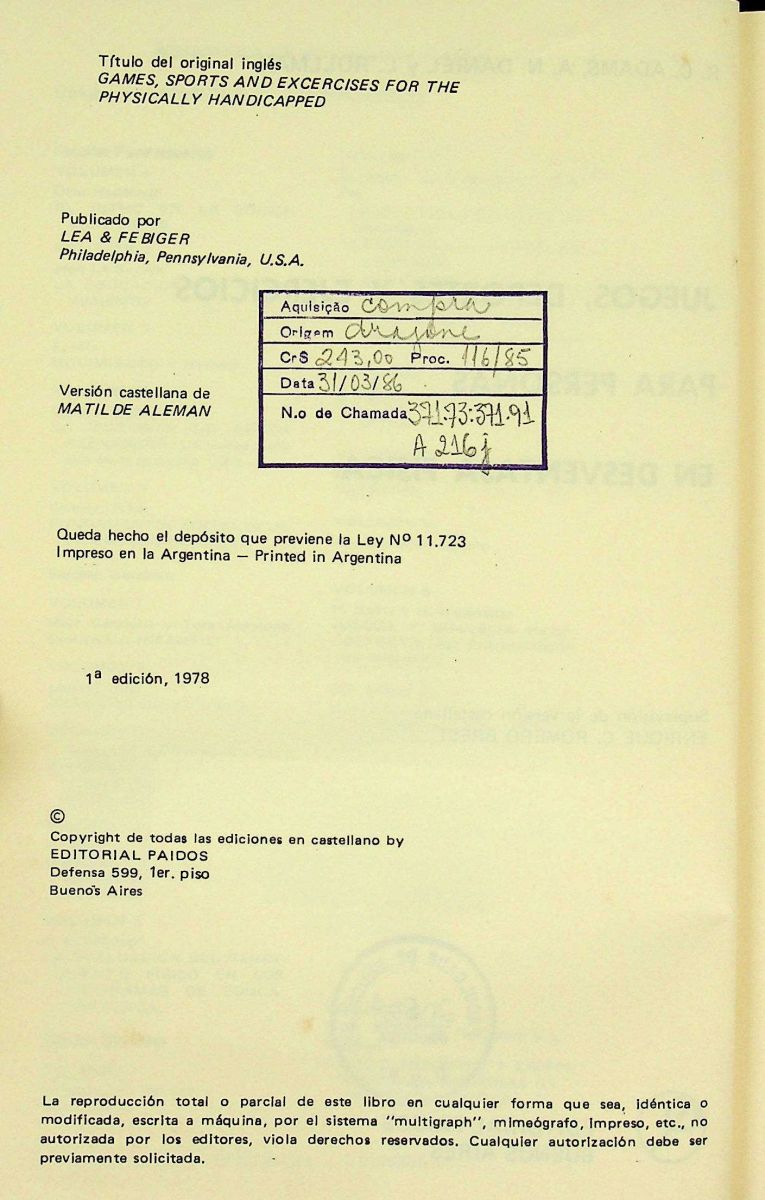 Título: Juegos, deportes y ejercicios para personas en desventaja física