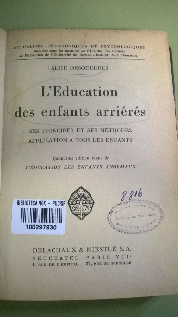 Título: L’education des enfants arriérés: ses principes et ses méthodes, application a tous les enfants