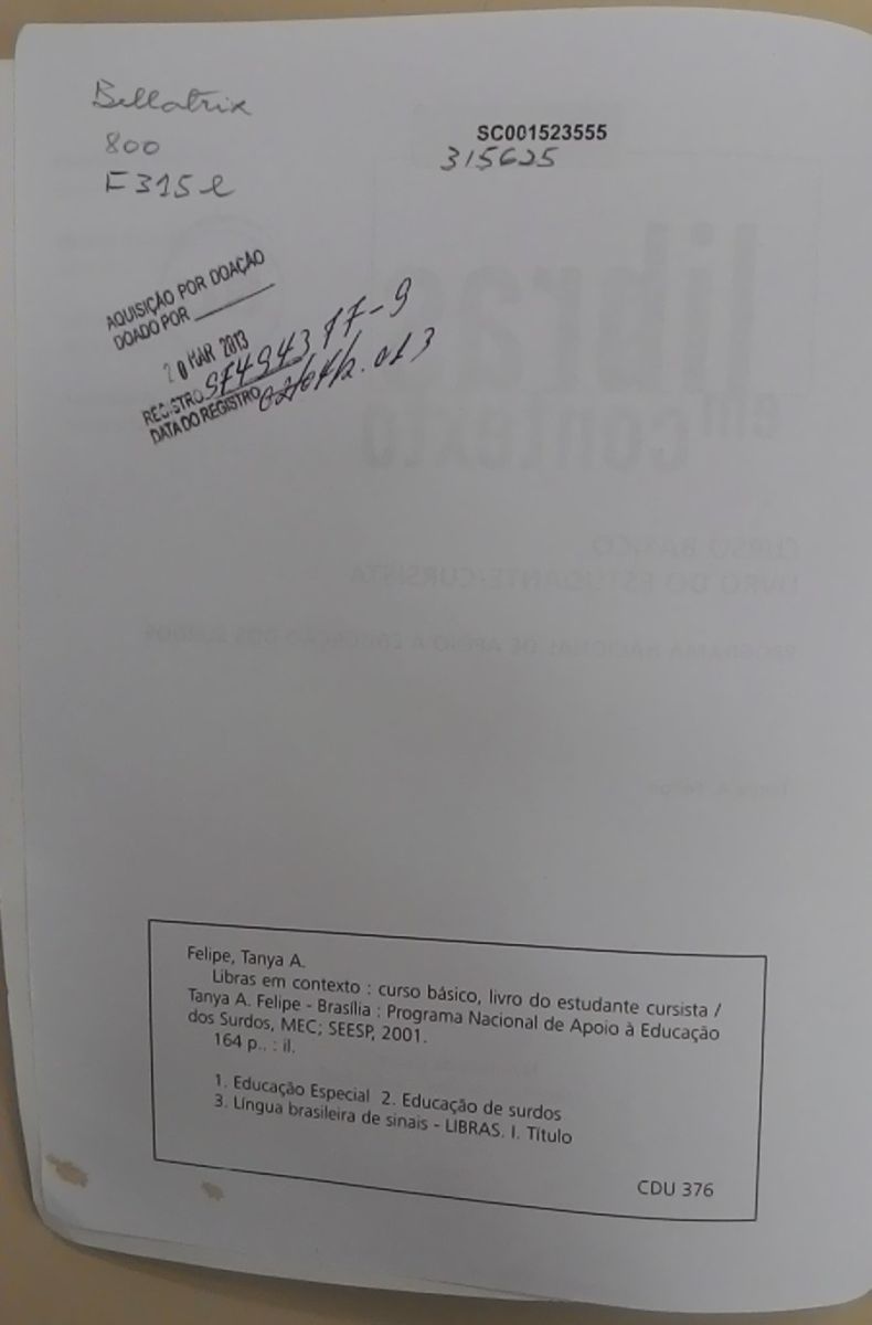 Título: Libras em contexto: curso básico livro do estudante cursista