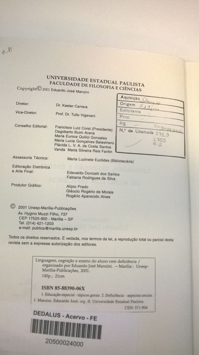 Título: Linguagem, cognição e ensino do aluno com deficiência