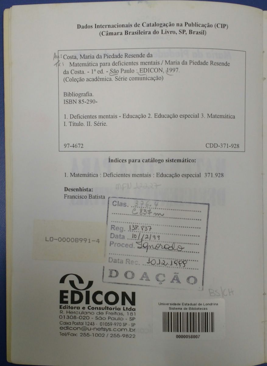 Autor/Organizador: Maria da Piedade Resende da Costa