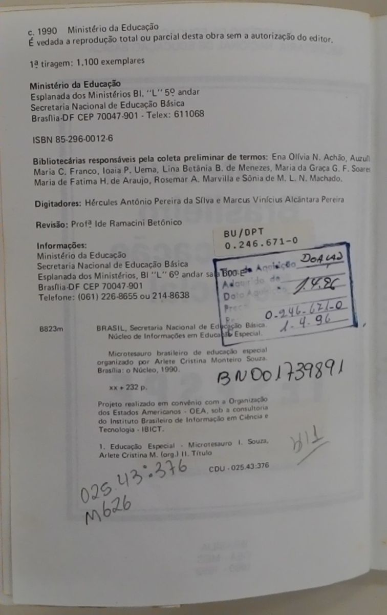 Título: Microtesauro brasileiro de educação especial: TESESPE