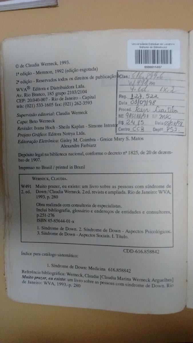 Título: Muito prazer, eu existo: um livro sobre as pessoas com síndrome de Down