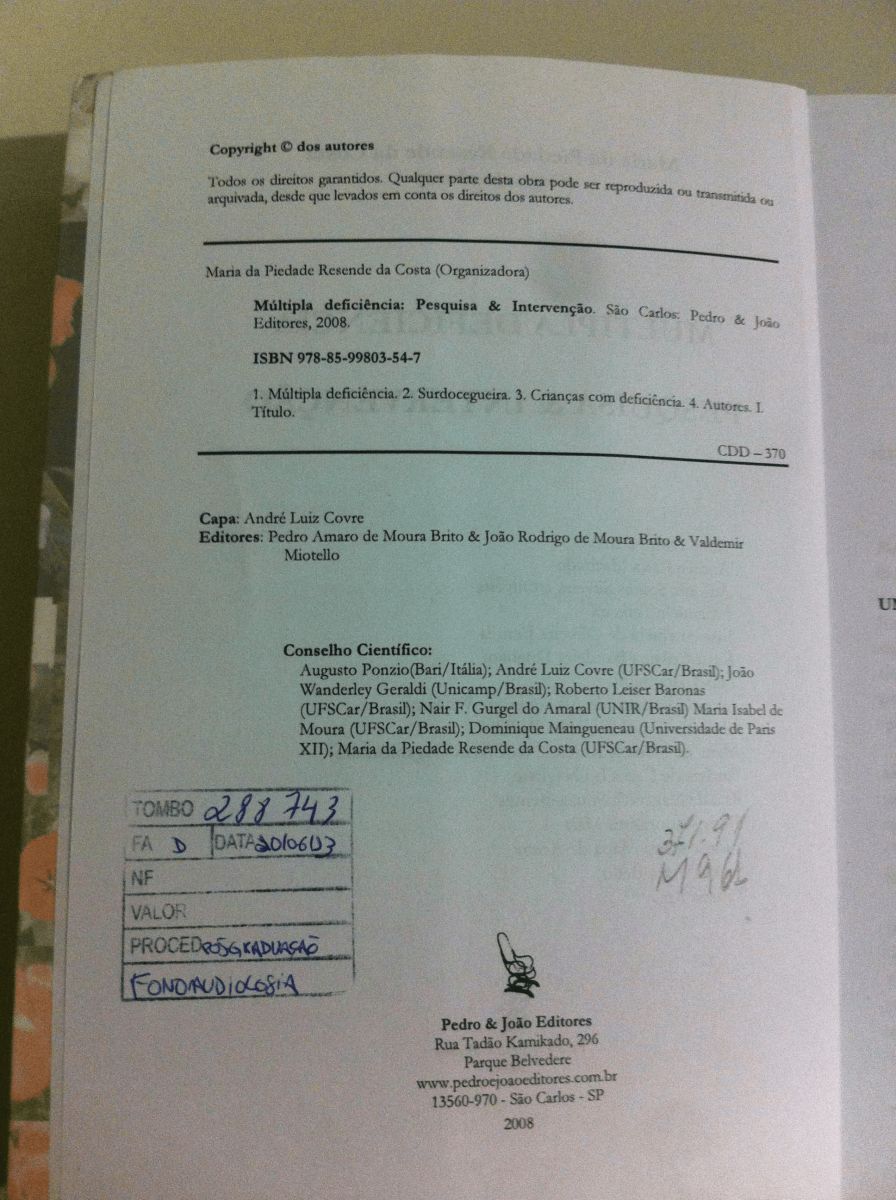 Múltipla deficiência: pesquisa & intervenção por Maria da Piedade Resende da Costa