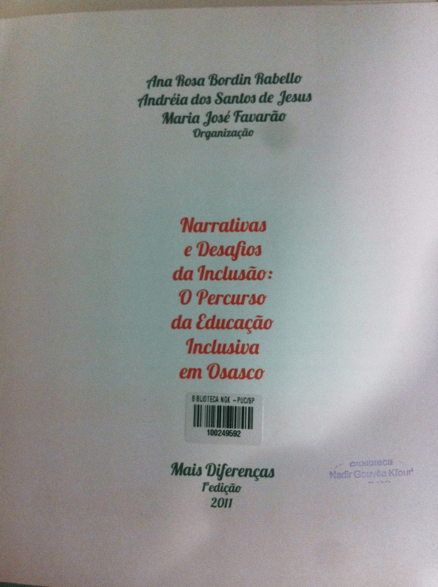 Título: Narrativas e desafios da inclusão: o percurso da educação inclusiva em Osasco