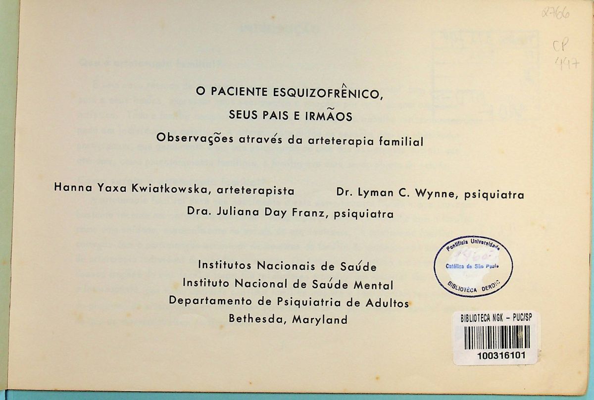 Título: O paciente esquizofrenico, seus pais e irmaos: observacoes atraves da arteterapia familial