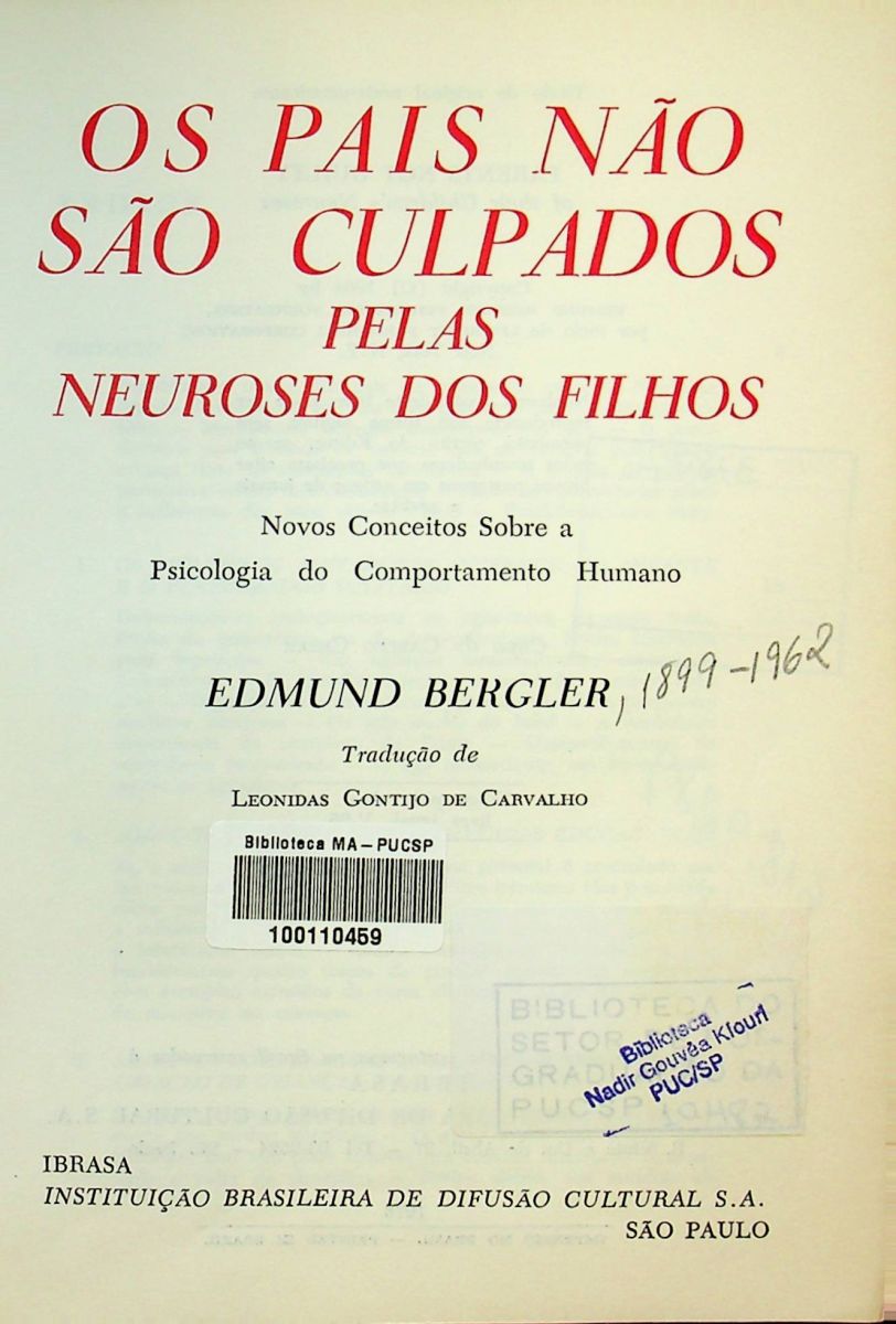 Título: Os pais nao sao culpados pelas neuroses dos filhos: novos conceitos sobre a psicologia do comportamento humano