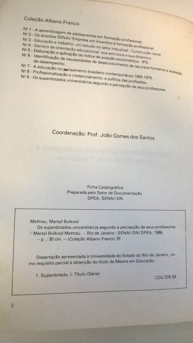 Os superdotados universitários segundo a percepção de seus professores por Marsyl Bulkool Mettrau