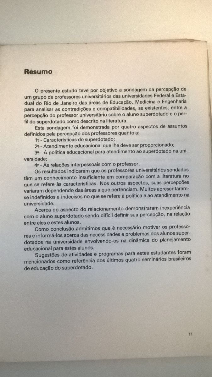 Título: Os superdotados universitários segundo a percepção de seus professores