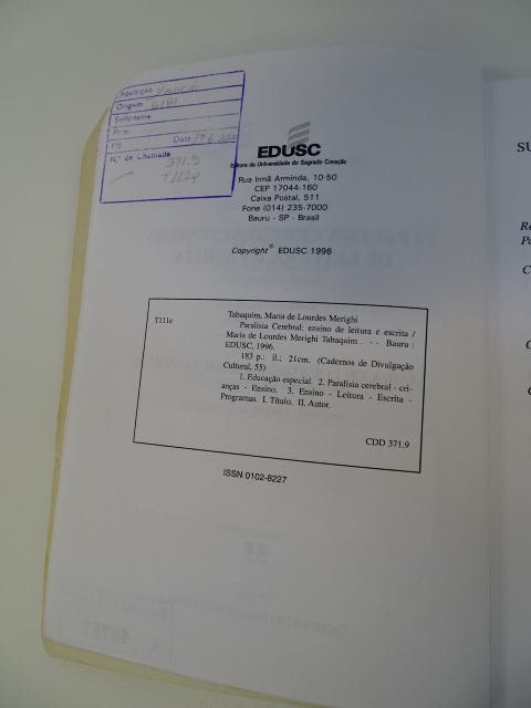 Título: Paralisia cerebral: ensino de leitura e escrita