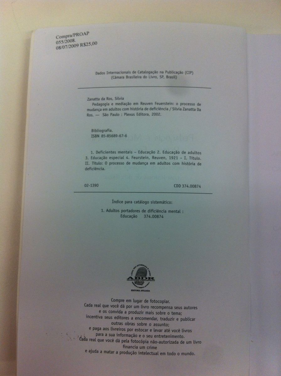 Título: Pedagogia e mediação em Reuven Feuerstein: o processo de mudança em adultos com história de deficiência