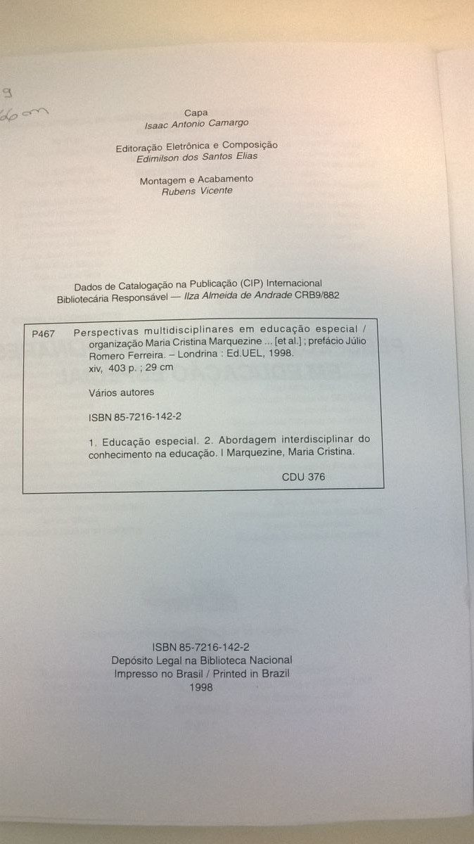 Título: Perspectivas multidisciplinares em educação especial