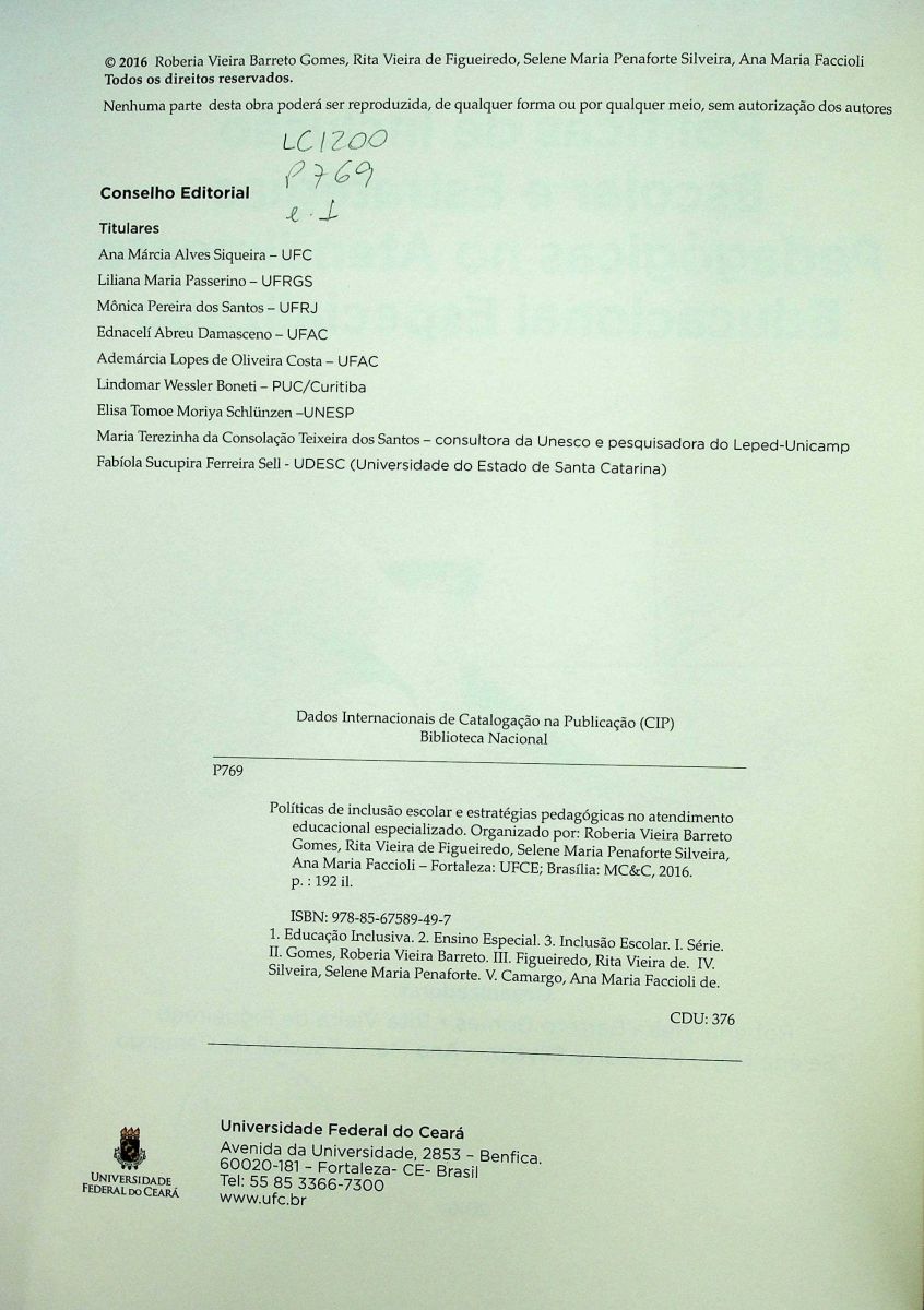 Título: Políticas de inclusão escolar e estratégias pedagógicas no atendimento educacional especializado